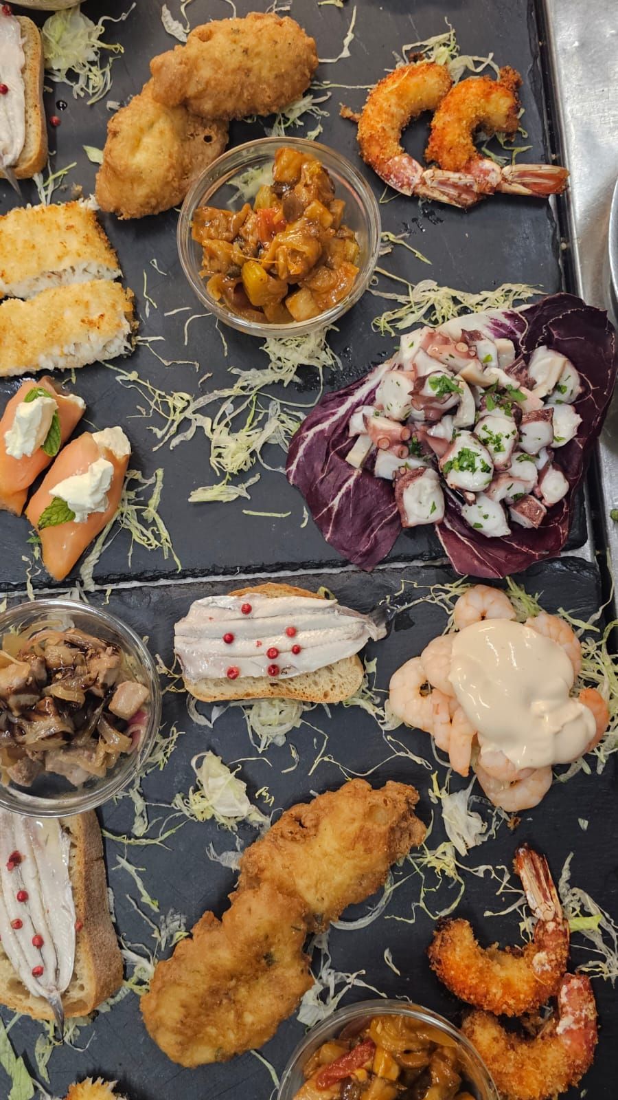 si distingue per la sua eccezionale selezione di antipasti di terra e mare, accompagnati da deliziosi contorni che soddisfano i palati più raffinati. Tra gli antipasti di terra, spiccano prelibatezze come l'antipasto con verdure di stagione, che esalta i sapori freschi e genuini dei prodotti locali. Per gli amanti di un'opzione più leggera e salutare, sono disponibili un delizioso antipasto vegetariano e un'appetitosa alternativa vegana. Per chi ama il mare, l'ampia scelta di antipasti include invitanti opzioni come l'insalata di polpo, la pepata di cozze, le acciughe marinate, la zuppa di cozze e uno squisito sautè di cozze e vongole. A completare l'esperienza culinaria, i contorni offrono una varietà di opzioni, tra cui le fragranti verdure grigliate, l'insalata mista, l'insalata verde e le croccanti patatine fritte, contribuendo a creare un connubio perfetto di sapori e tradizioni siciliane.